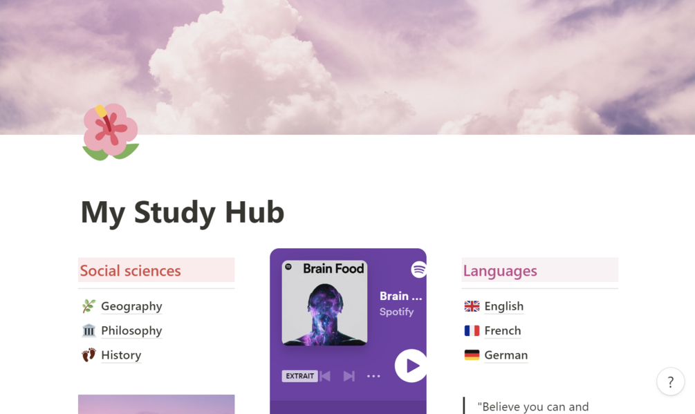 In this template, you'll find an organized and flexible space for all your courses: a template adapted to each subject with integrated formulas, links to videos, images, specific colors, and more! You'll also find spaces for creating to-do lists and organizing yourself, planning your exams, or even a personal space! What are you waiting for?